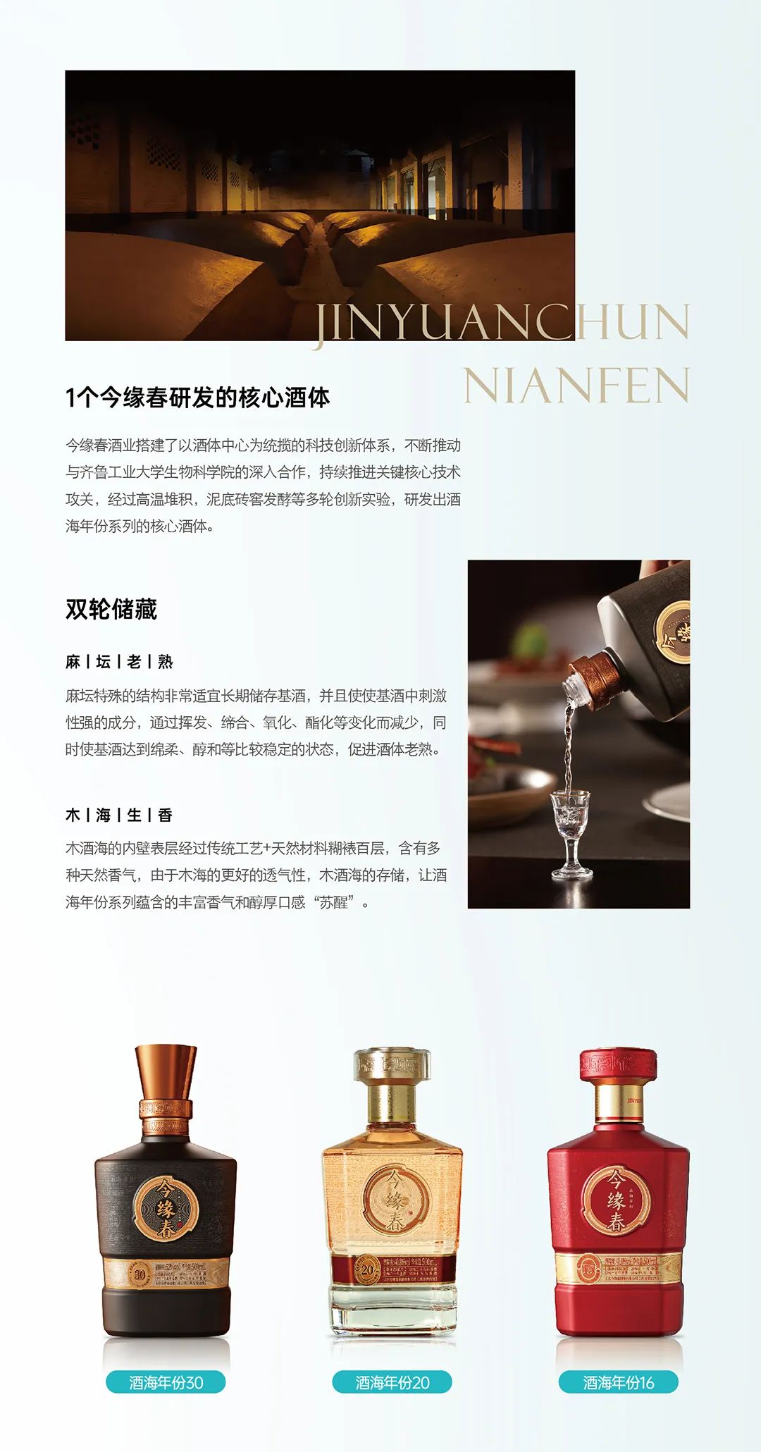 今缘春酒业拥有创自1861年的非遗酿造技艺,引进国内一流水准的智能化酿酒生产线,通过不断科技创新和智能化技改,秉承“让传统的更传统,让现代的更现代”的酿酒理念,实现了智能化生产与古法工艺的完美融合。